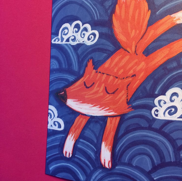 blank inside for your own personal message - a dreamy fox image from an original illustration by Jo Brown