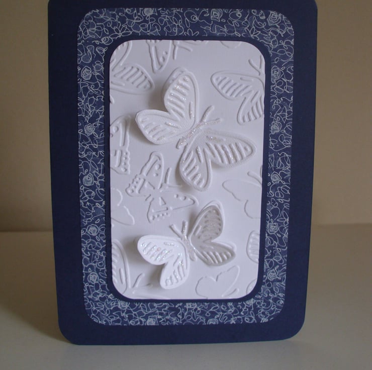 Embellished with 2 hand cut and glittered embossed butterflies.