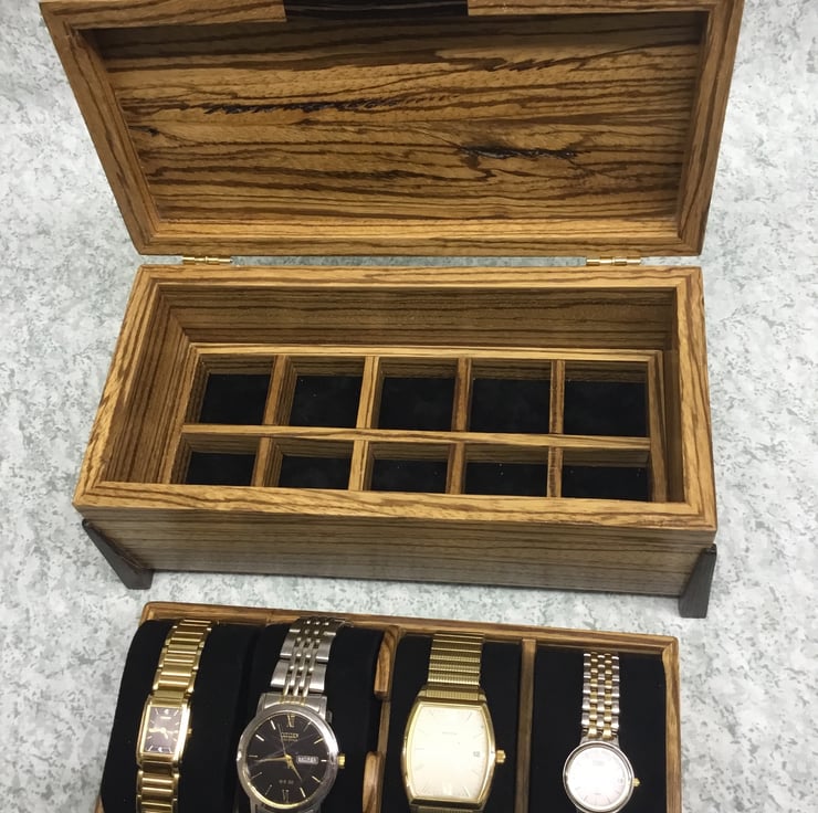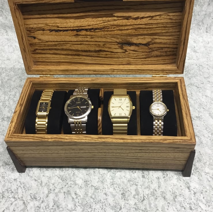 It will accommodate 4 ladies watches of average size on the top lift-out tray.
