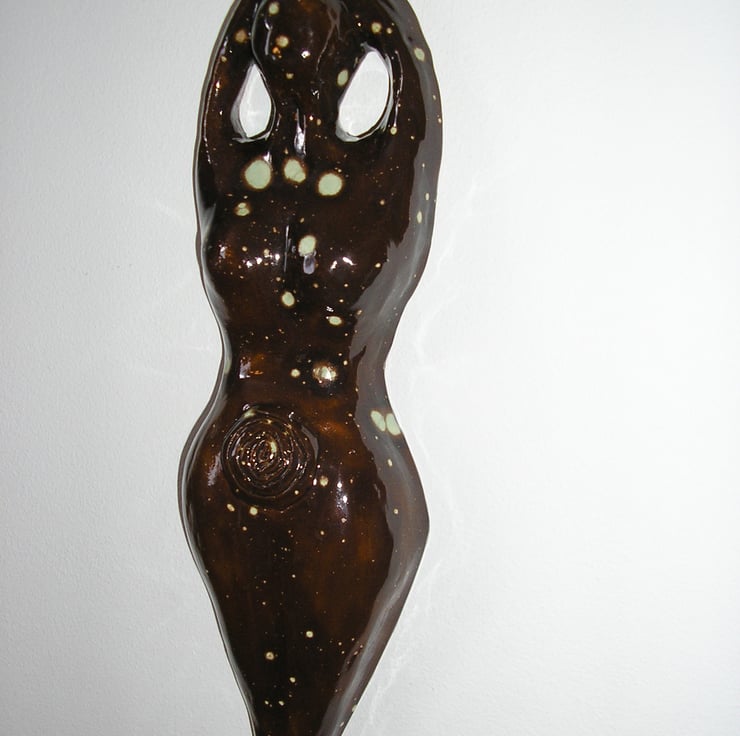 I have been making goddesses for many years and sculpted this goddess, then used an earthenware glazed finish.
