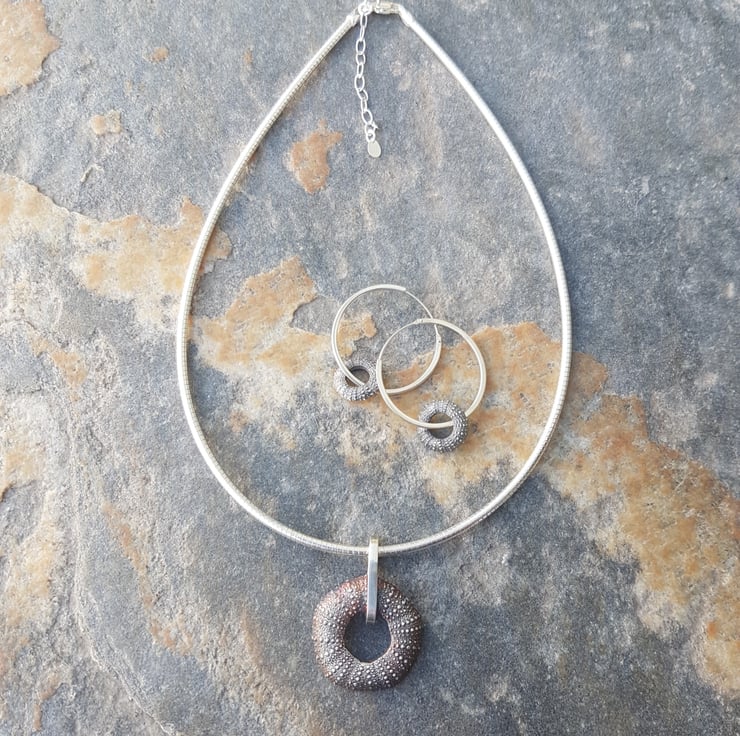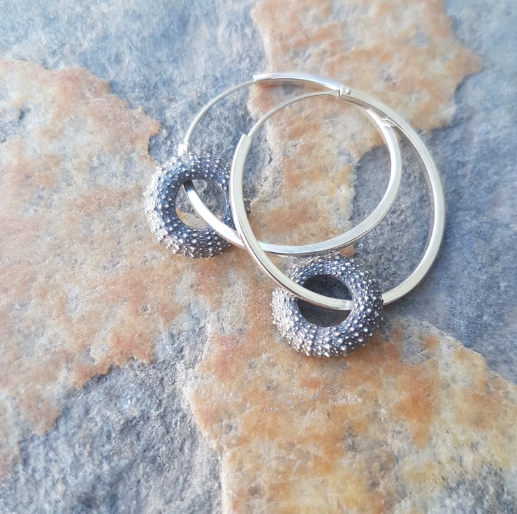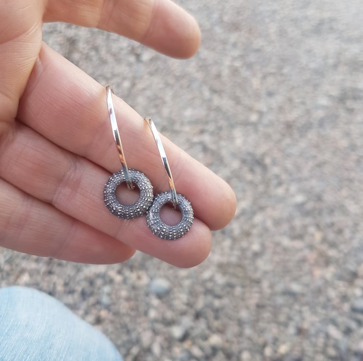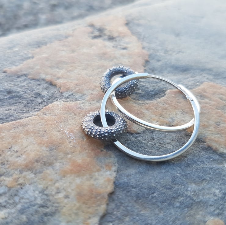 These lovely earrings have solid fine silver tiny Sea Urchin rings.