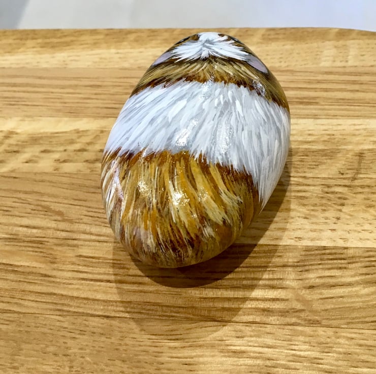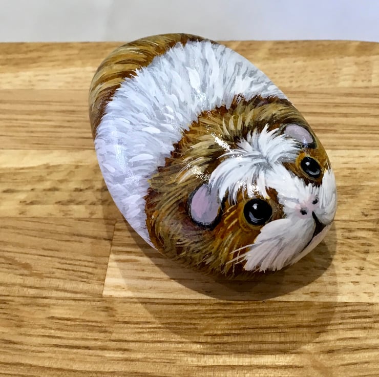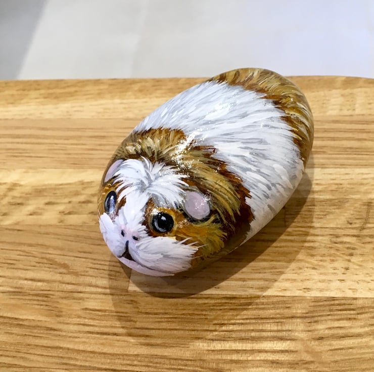 This Guinea pig has been painted onto a smooth stone and glazed for a glossy protective finish