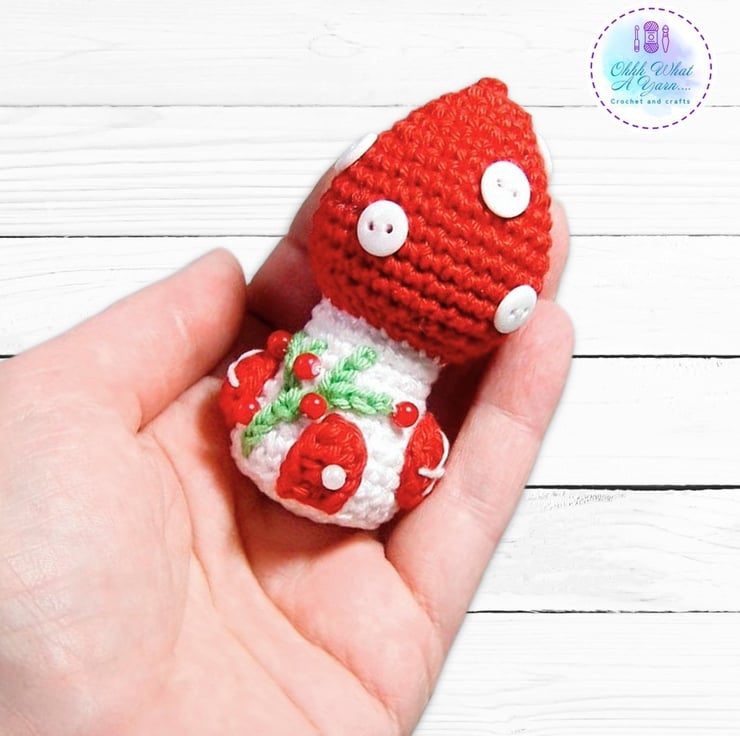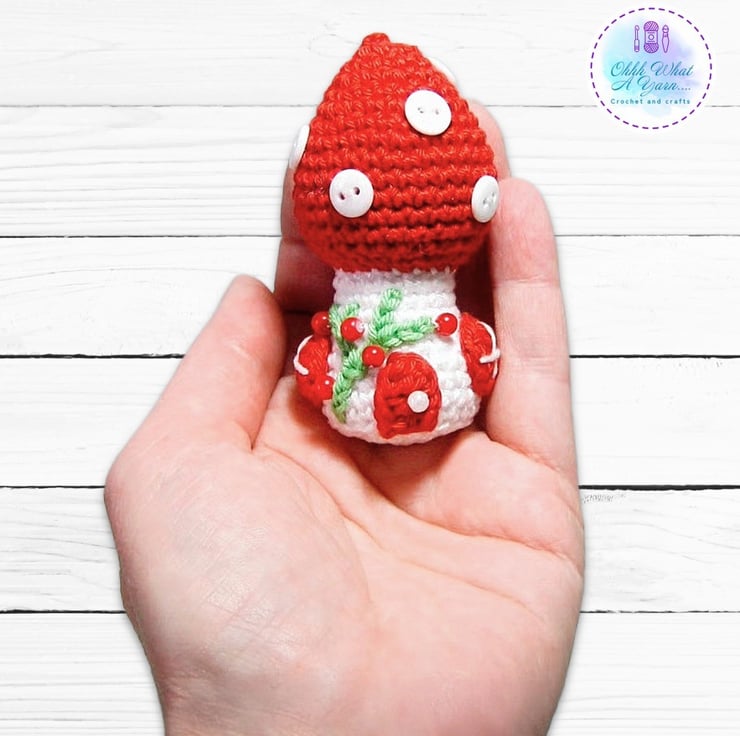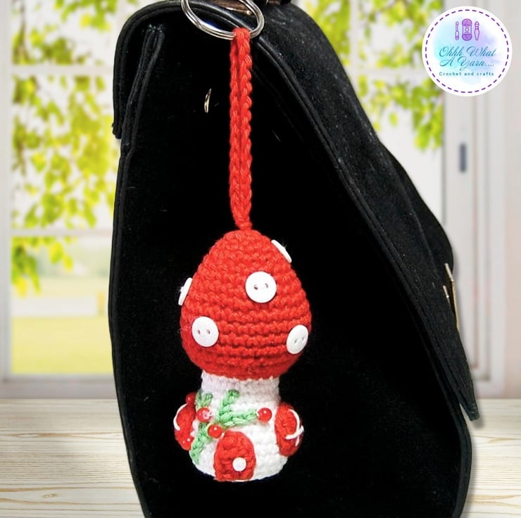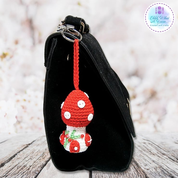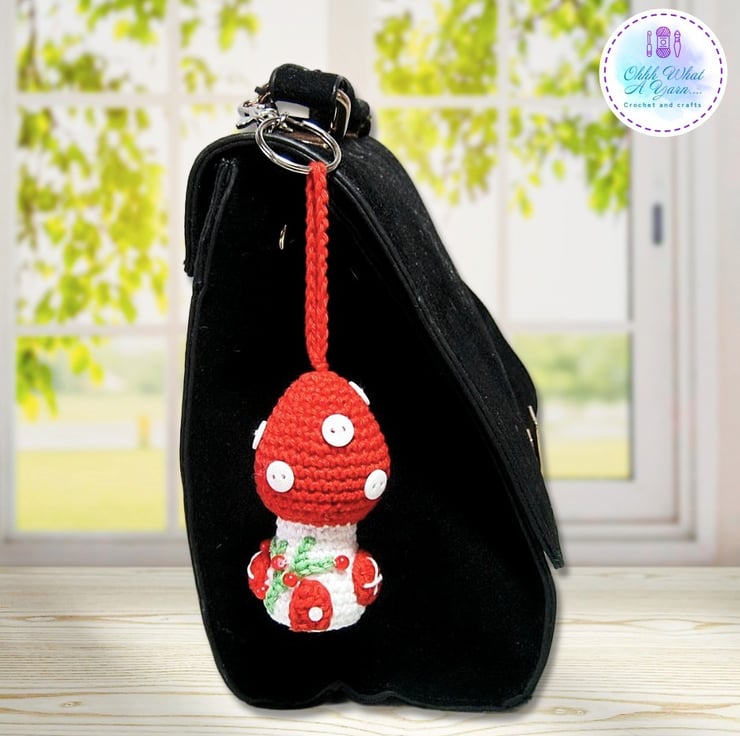 I already make a large crochet toadstool fairy house and I thought it would be fabulous to shrink them to use as bag charms, decorations etc.