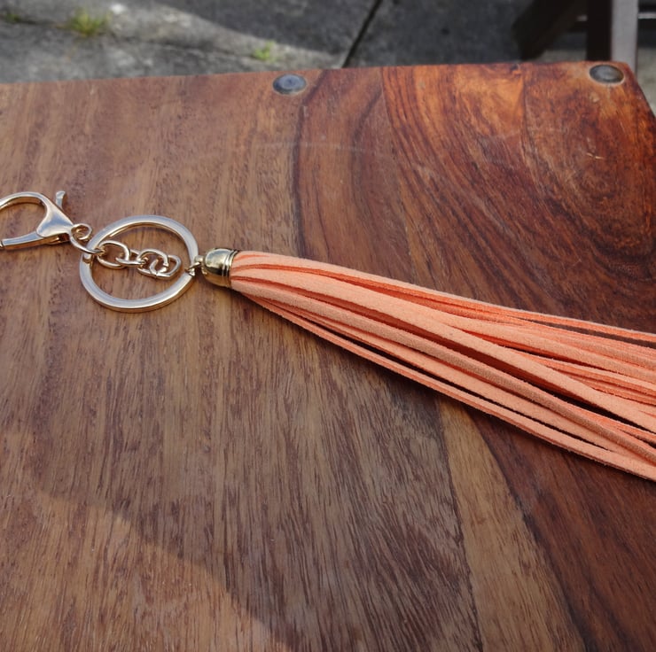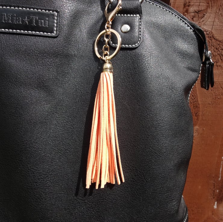 Handcrafted tassle made using peach coloured faux suede.