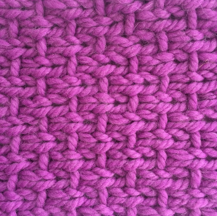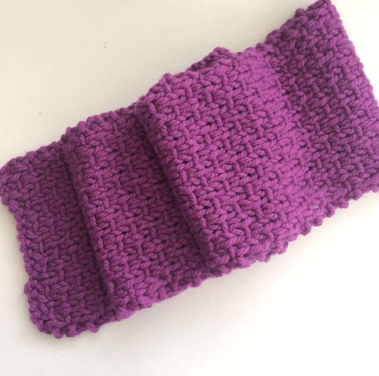 Simple luxury 100% wool scarf in a great textual knit. Size is 4” 9” /144 cm long x 8” / 20 cm wide , designed to be knotted round the neck , a simple knot that shows off both sides of the work (the wrong side is just as beautiful as the right side).