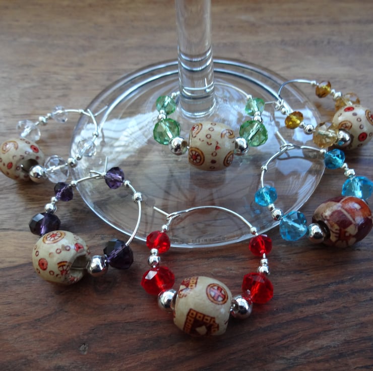 These have been made using various sized metal beads, acrylic bevelled beads and a wooden bead.