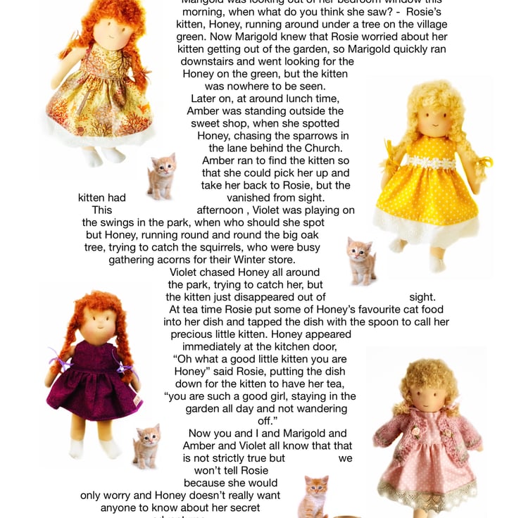 There are other children in Maisy’s class at school - Violet, Billy with his pet rabbit, Amber, Tilly, Rosie and her kittens, Amelia, Ruby, Marigold, Bobby with Max the dog, and the twins Oliver and Olivia, who have a puppy called Oscar. The dolls are all 26cm tall and baby Daisy is 16cm. Maisy and Mo love nothing more than having adventures with their friends. You can read about their adventures on my Facebook and Instagram pages - Maisy Muffin Rag Dolls and on my Mulberry Green Pinterest boards.