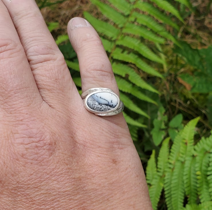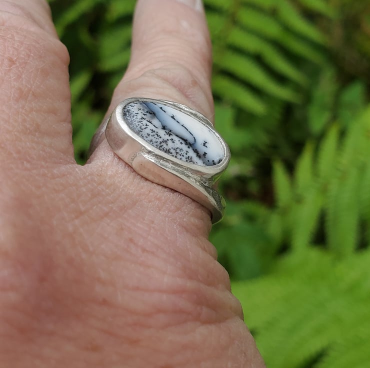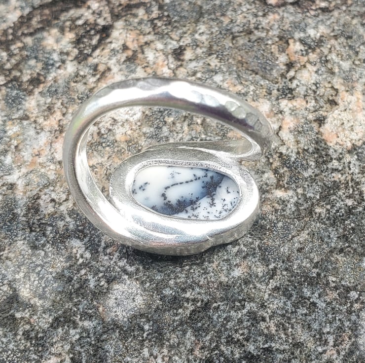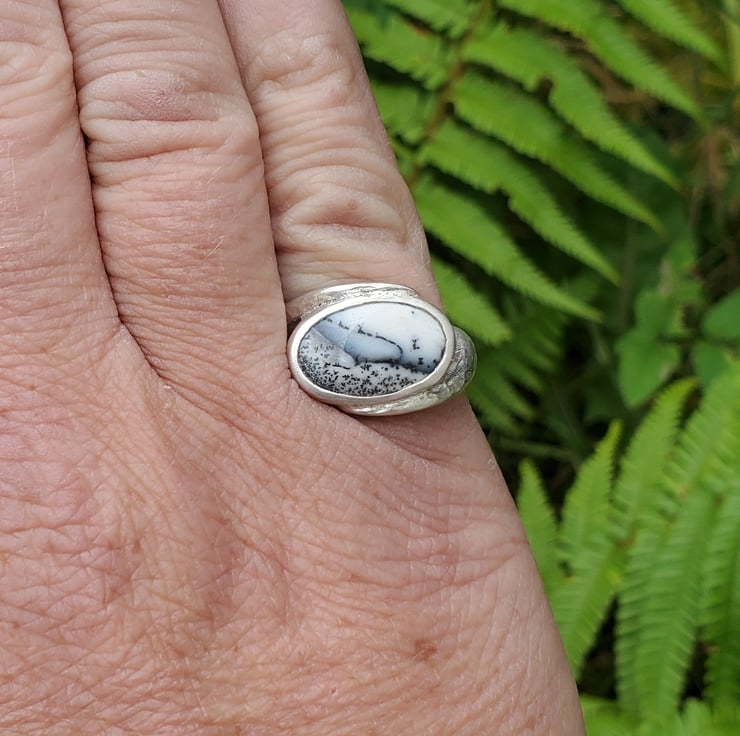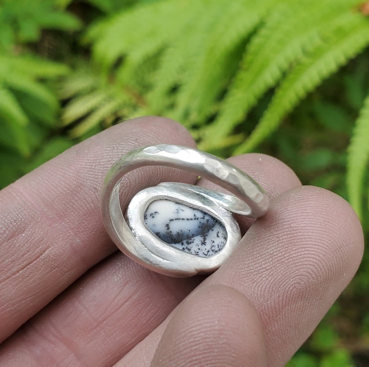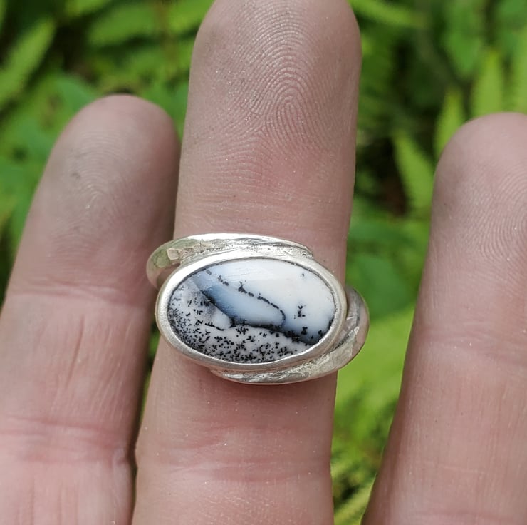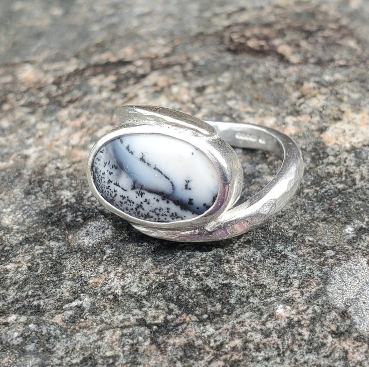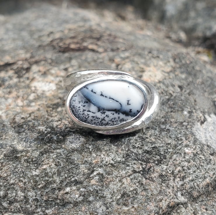 This beautiful ring is handmade from sterling and fine silver. With a stunning Merlinite gemstone.