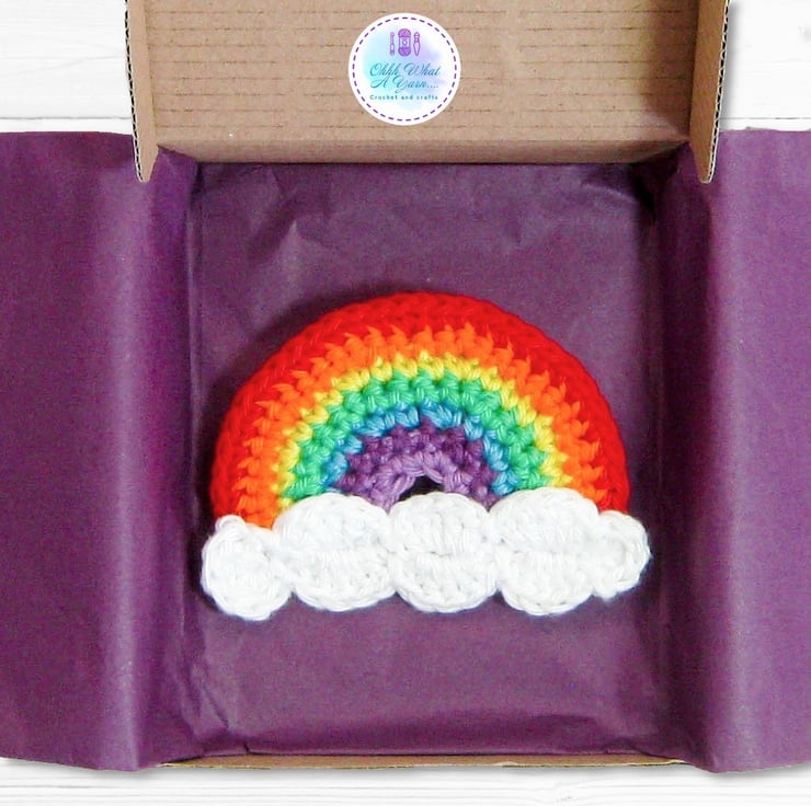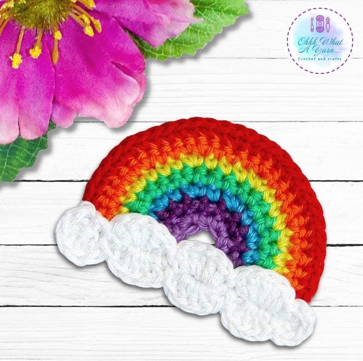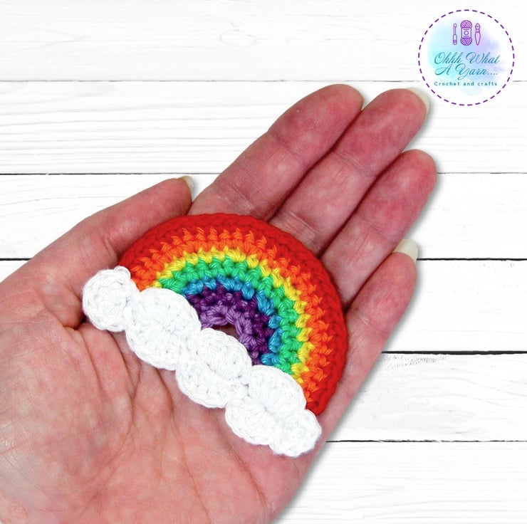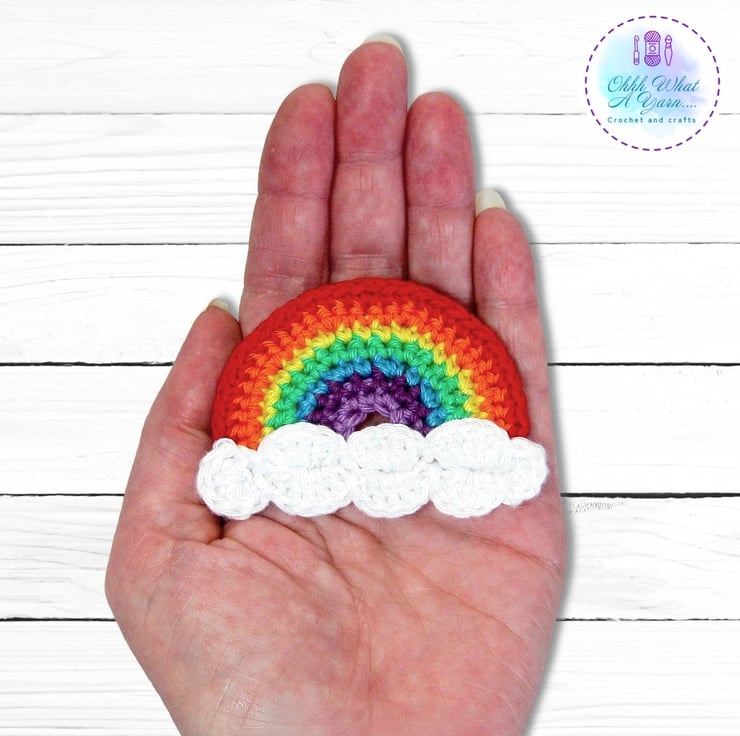 This cheerful and bright rainbow brooch has been crocheted with Scheepjes Catona mercerised cotton yarns which gives it a lovely sheen and stitch definition.