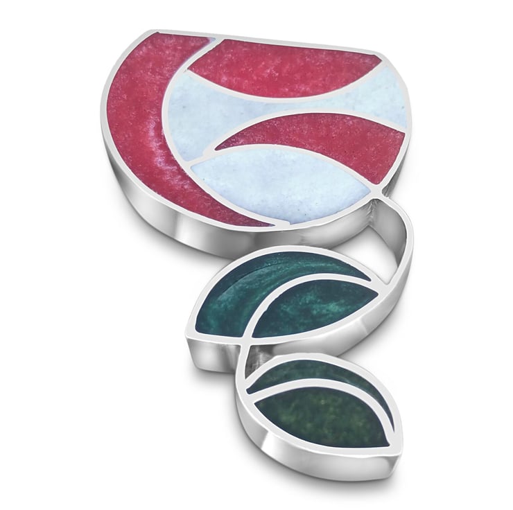 It is made using hand cut strips of metal that are then formed and soldered individually onto a base, then each section is painstakingly filled with hand mixed coloured resin that is polished to a high shine.