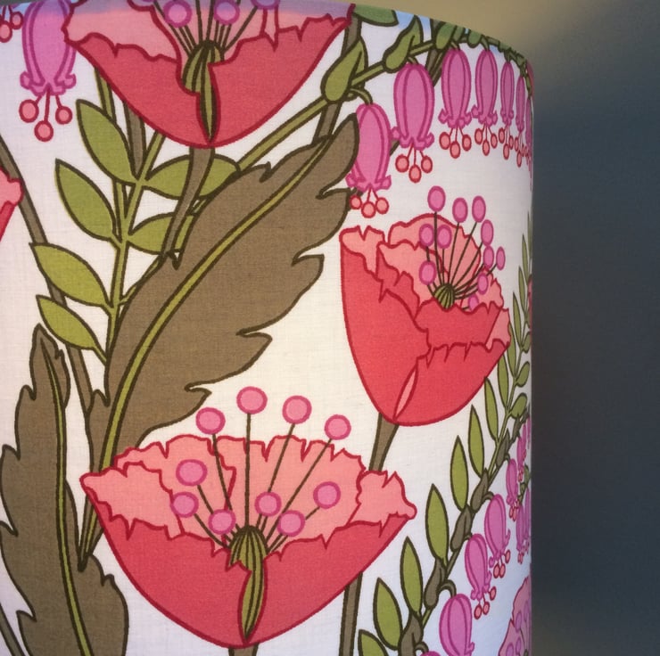 70s pink and lime floral CLIO Sanderson Vintage Fabric Lampshade option - striking fabric for a lampshade in a modern, vintage or retro home. This one makes QUITE and impact I think !