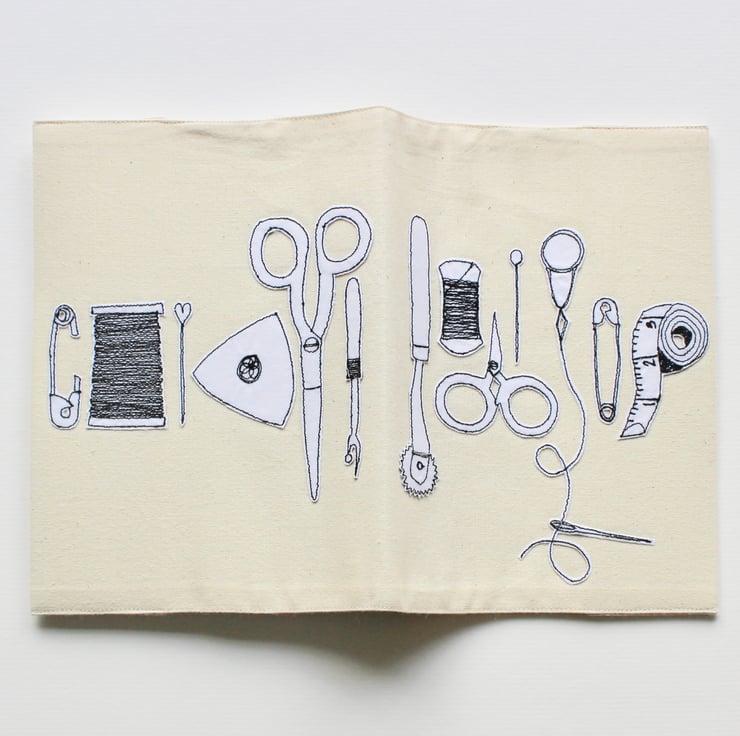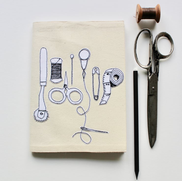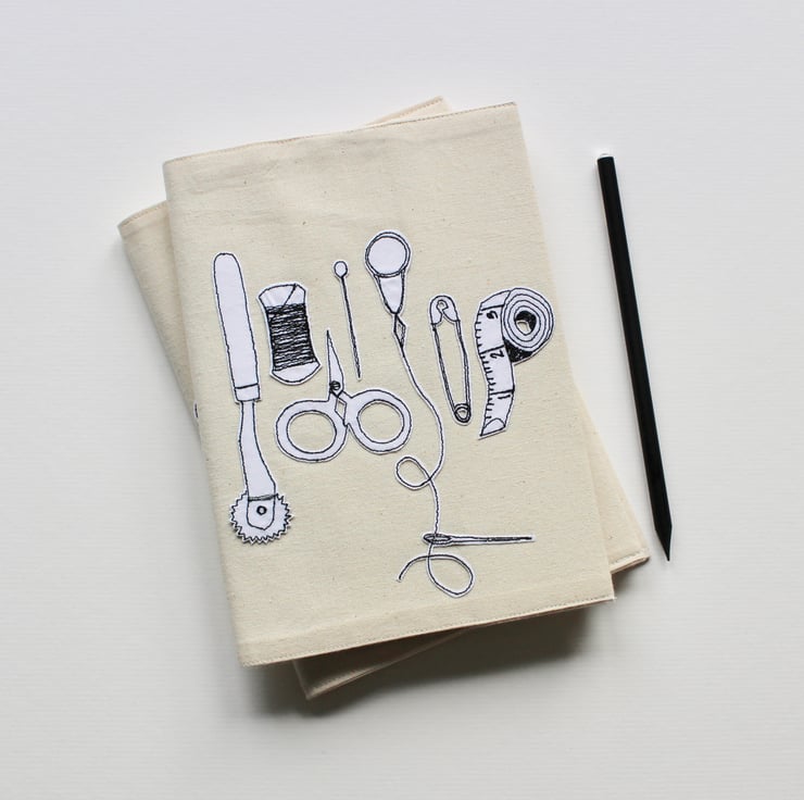 This sewing essentials notebook cover and notebook is the ideal place to write or sketch your sewing ideas. The perfect gift for sewing themed stationery lovers of all ages.