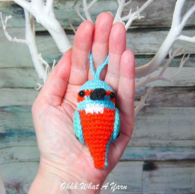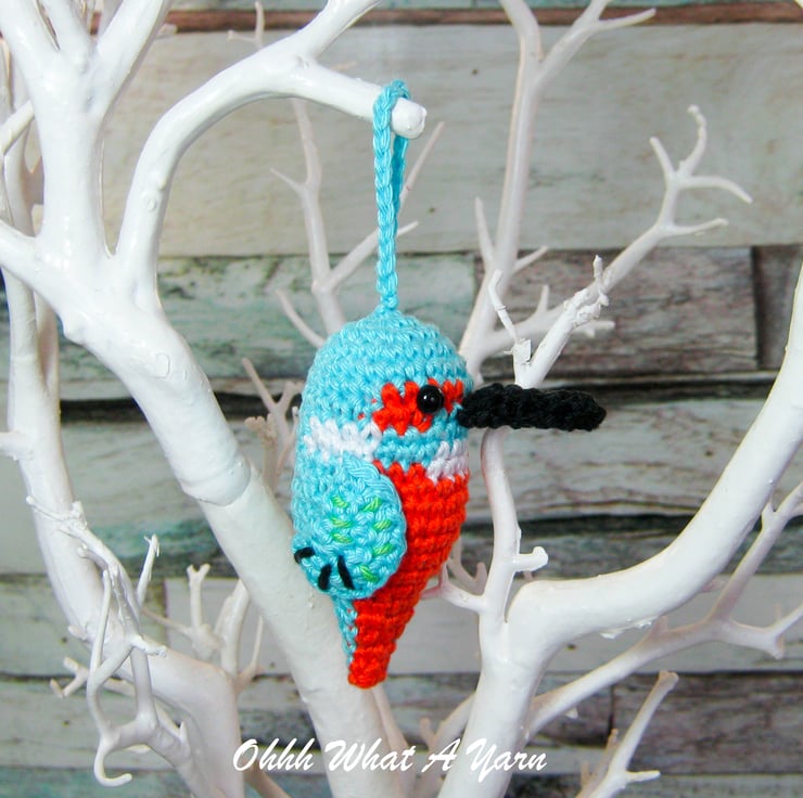 They love to hang about on a twiggy tree or on your favourite bag. They also like to look after your favourite scissors for you. This one has bead eyes and embroidered details on his wings.