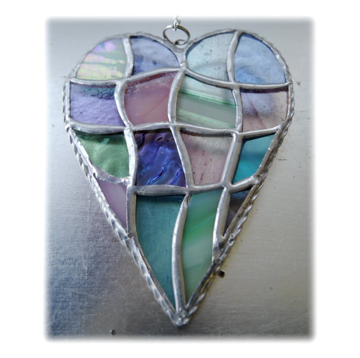 This is a stained glass suncatcher made using the Tiffany copper foil technique.