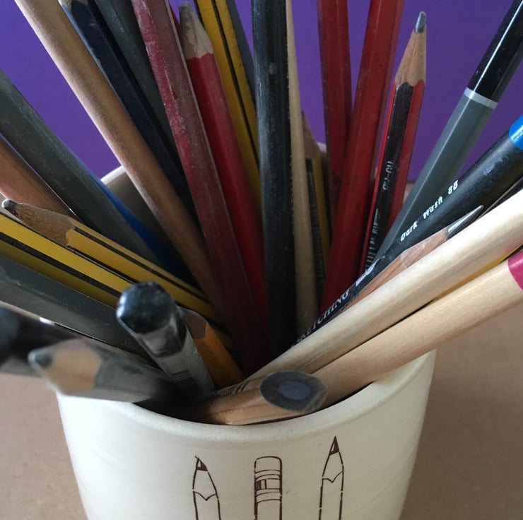 A handmade pencil pot. A quirky way to store your pencils (and maybe a few biros could be added!)