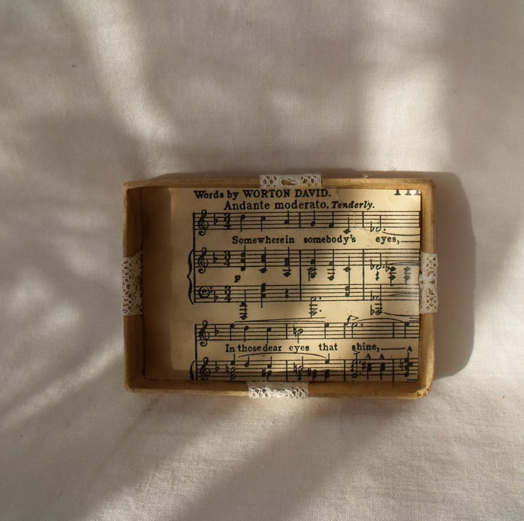 The lids are also decorated and inside has vintage sheet music attached.