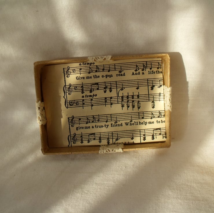 The lids are also decorated and inside has vintage sheet music attached.