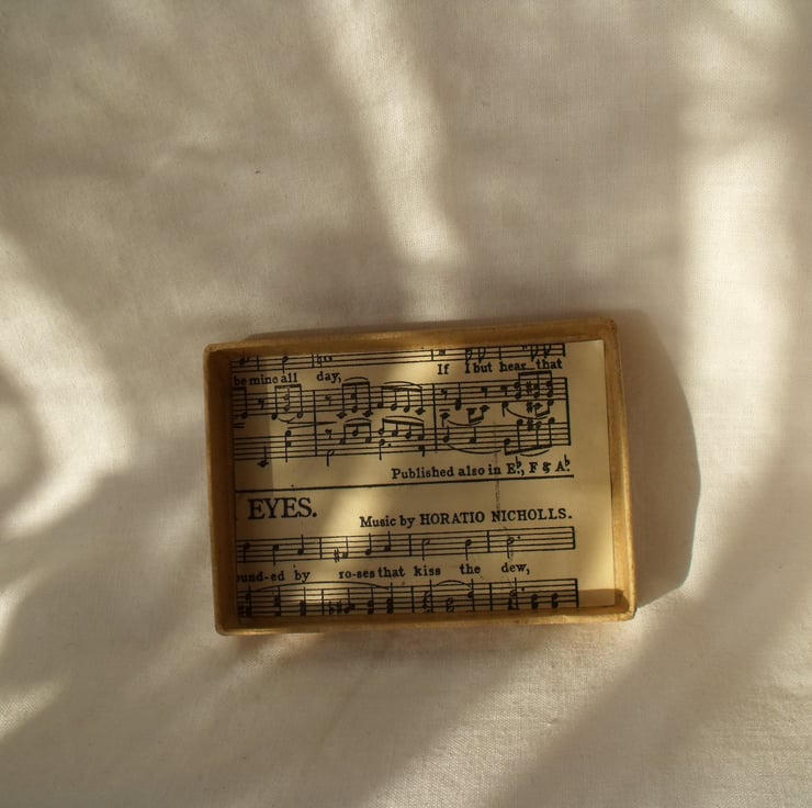 The lids are also decorated and inside has vintage sheet music attached.