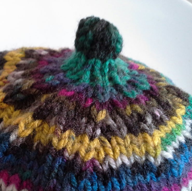 This is a genuine designer product. It has not been reproduced from any commercially published knitting pattern. Please respect the designer's full time profession, skills and modest income for 2 hours of quality craftsmanship by not trying to reproduce it. This includes using different yarns, colourways, added trims, stitch formations, images and artwork.
