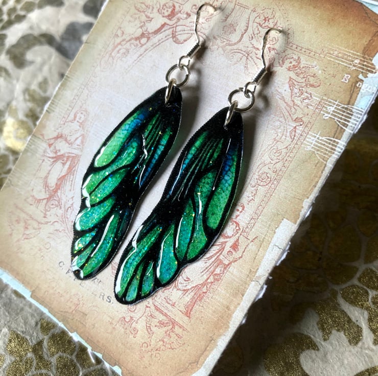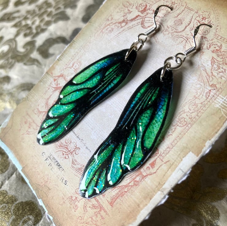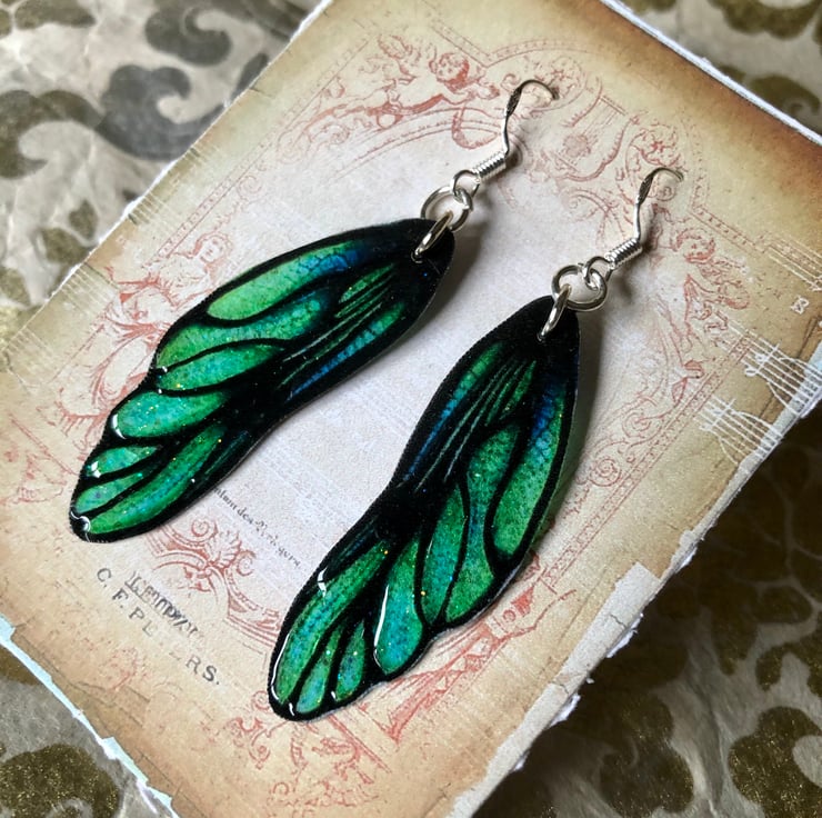 Green dragon fairy wing earrings.