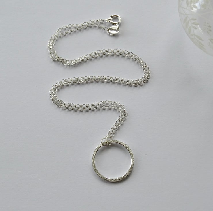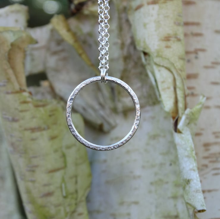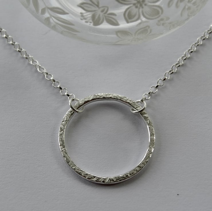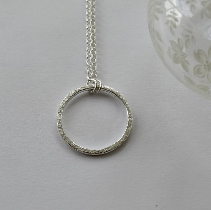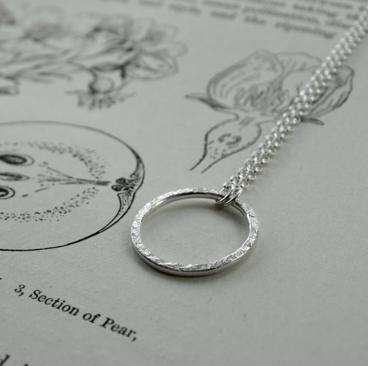 A delicate hand crafted pendant, fashioned from Eco Silver, featuring a finely textured pattern inspired by frost.