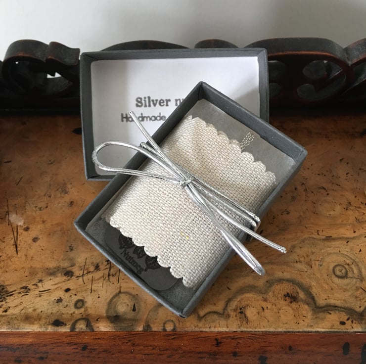 My jewellery is handcrafted in recycled silver. You can find out more by scrolling down to the "About me" section at the bottom of the page.