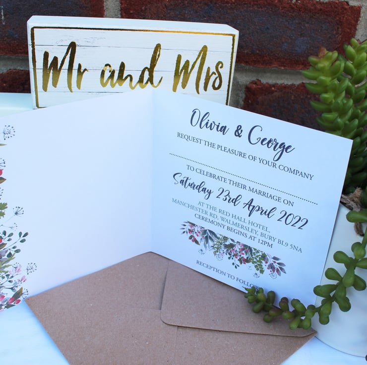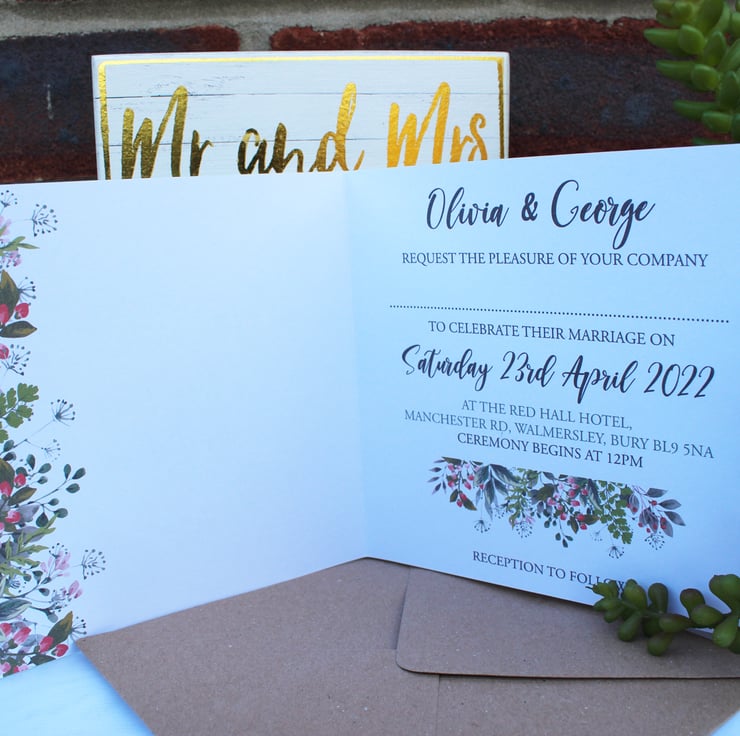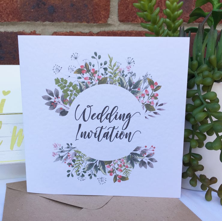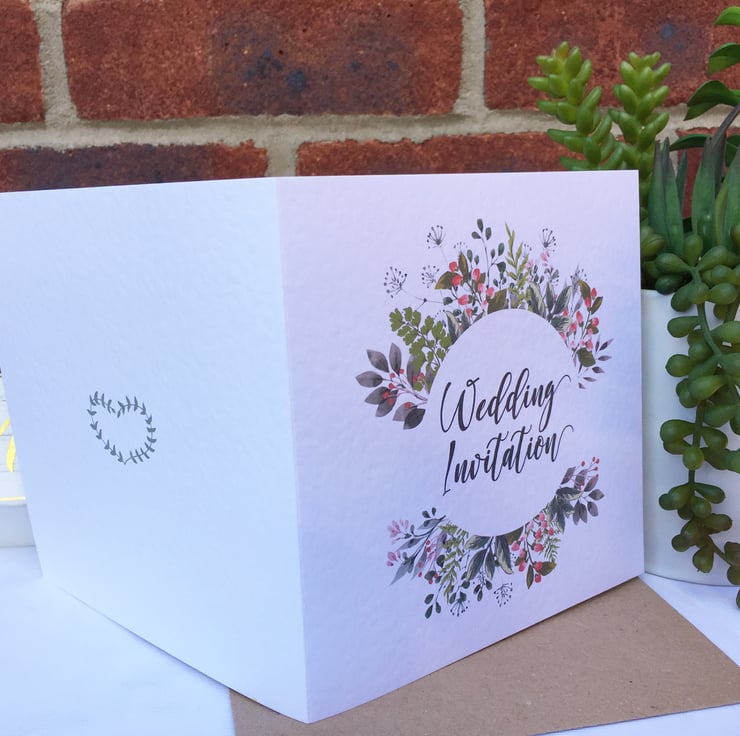 PERSONALISED wedding invitation wild flower floral wreath leaf foliage design