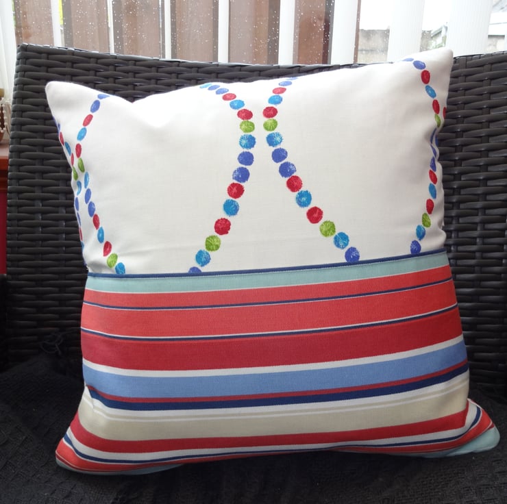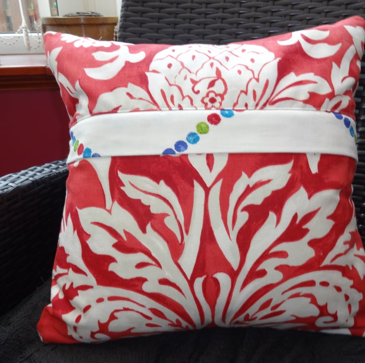 Handcrafted cushion cover which has a brand new 15 x 15 inch cushion pad included in the purchase.