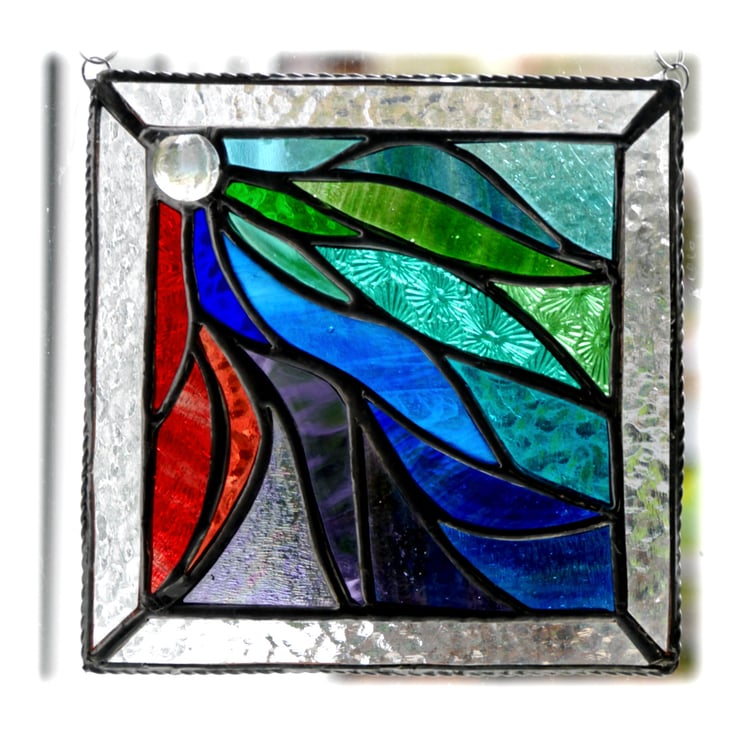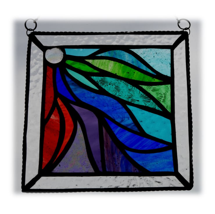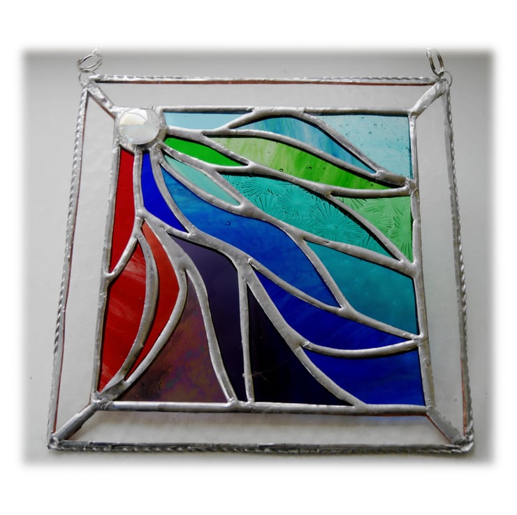 This is a stained glass suncatcher made using the Tiffany copper foil technique.