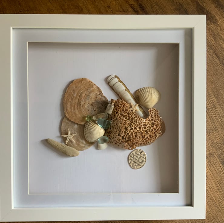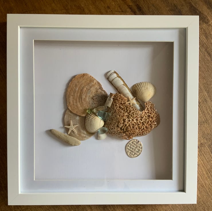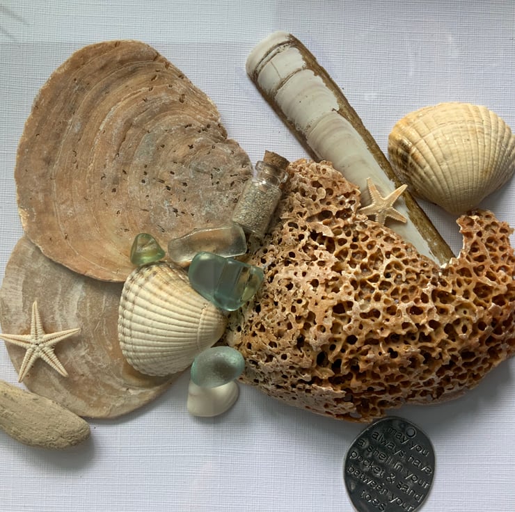 This is a Stunning Picture Of Shells, Driftwood and Sea Glass I have collected from Holkham Beach..
