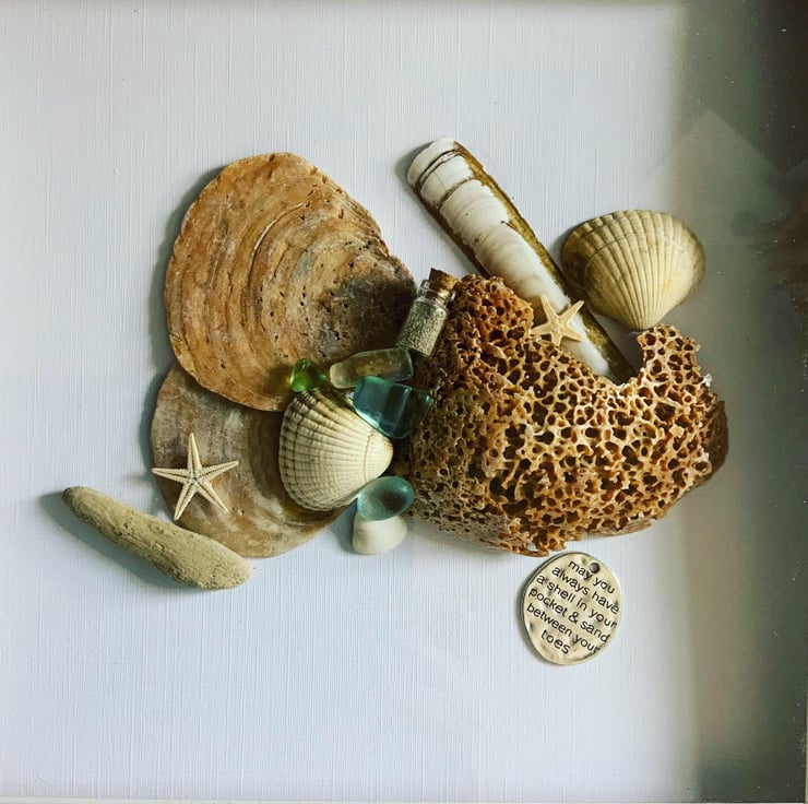 I collected all the shells, driftwood and sea glass while on holiday in Norfolk from Holkham Beach. I love all the shapes and beautiful colours.