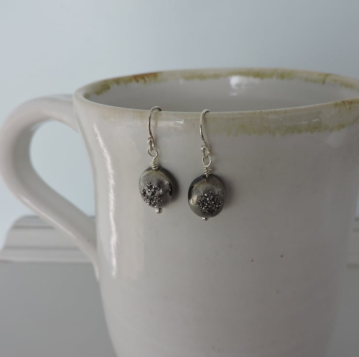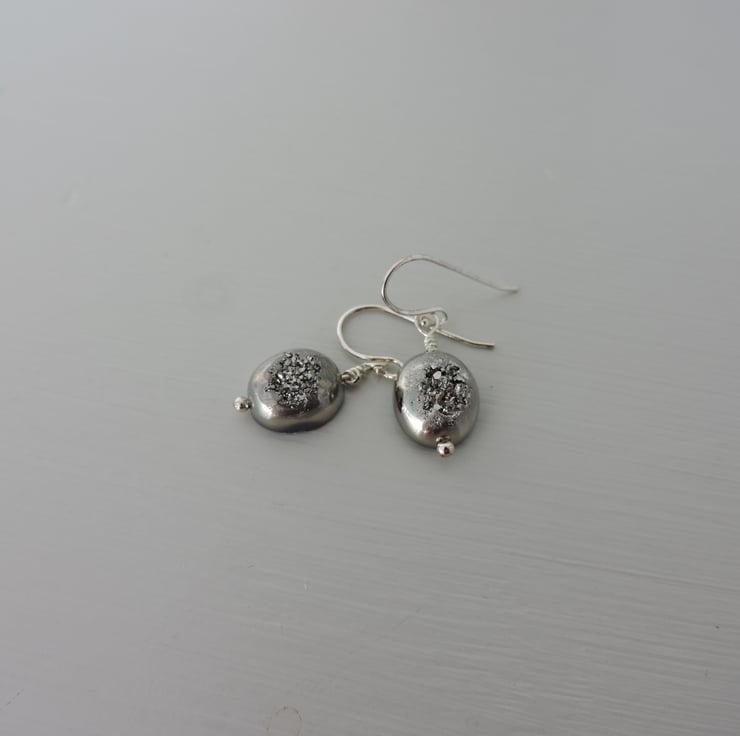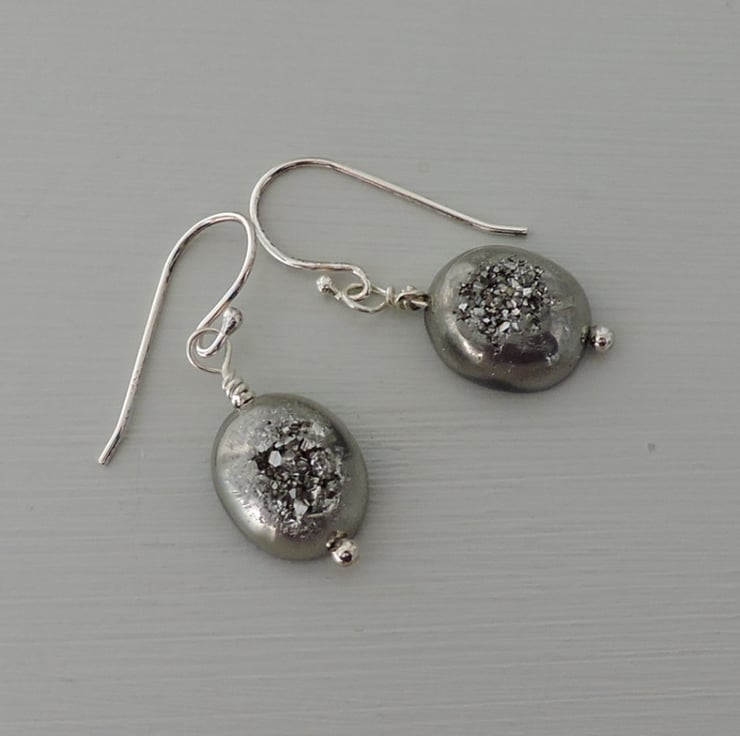I've made this pair of drop earrings with grey Druzy Agate drops on sterling silver wires.
