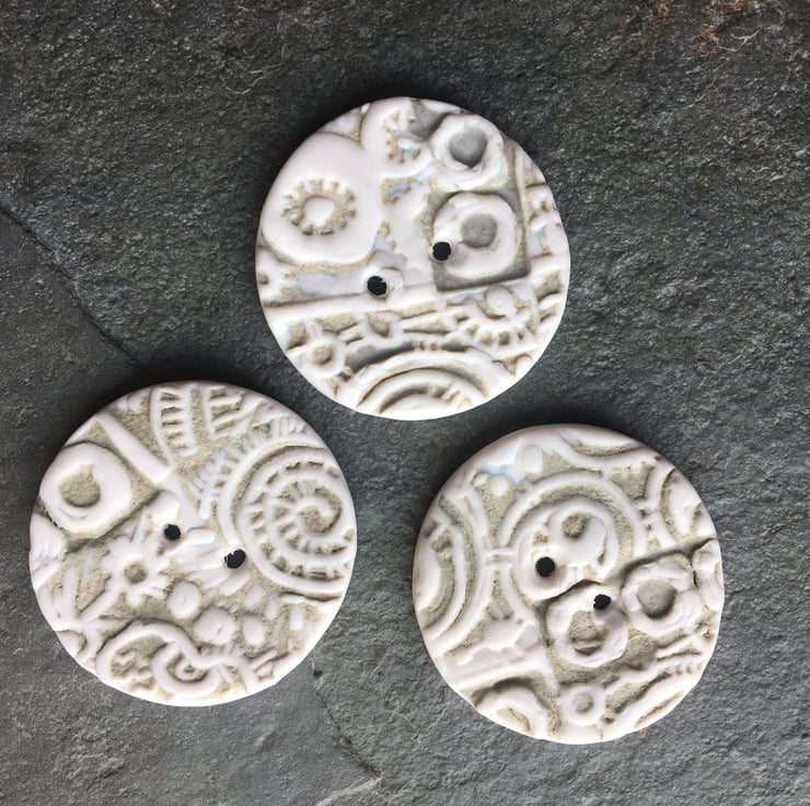 Since a child I have had an absolute fascination with buttons, we would play for hours with my Nana's button collection, sorting them, setting up a shop and pretending to sell them as sweets. There is something very pleasing and tactile about them! These buttons are handmade with the clay I have left once I have cut out the creatures in the Porcelain Menagerie. I don't like to waste it!