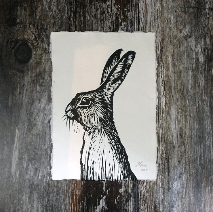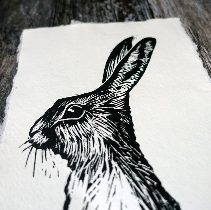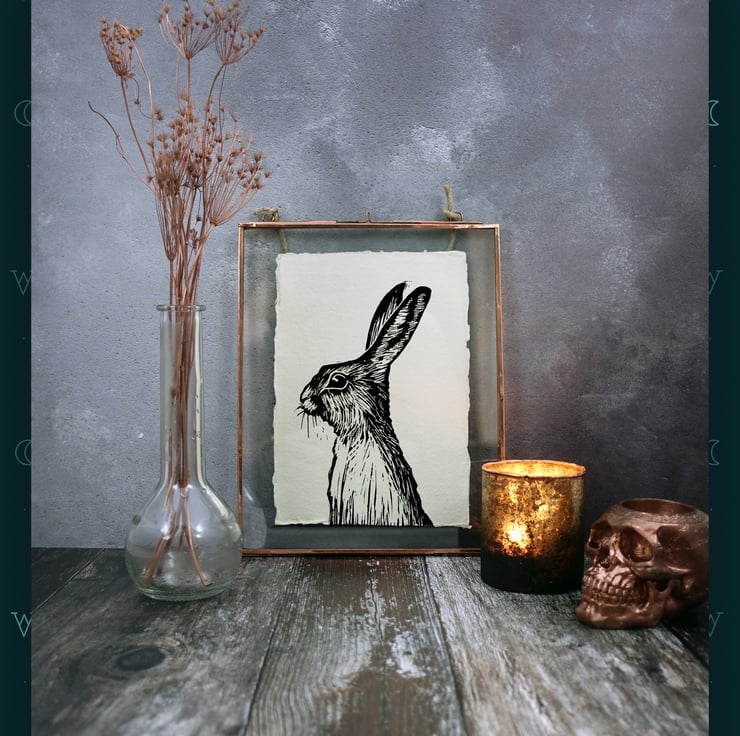 Hare Lino Print, Rabbit Print, Linocut, Printmaking, Witch Gift, Gothic Decor