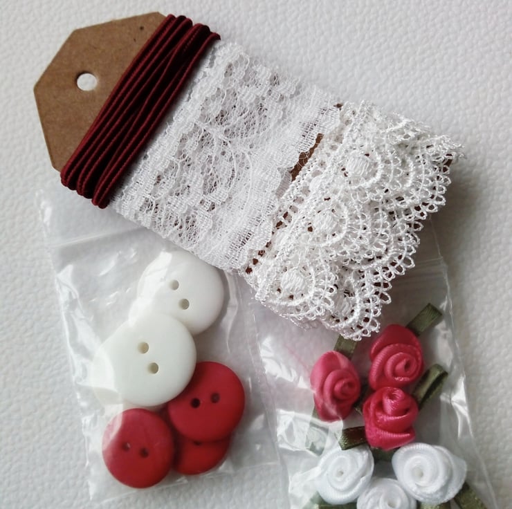 This lovely creativity fabric pack includes a selection of pretty fabric scraps of varying sizes, and a mix of delicate lace, buttons and other embellishments are also included to add extra interest and texture to your project.