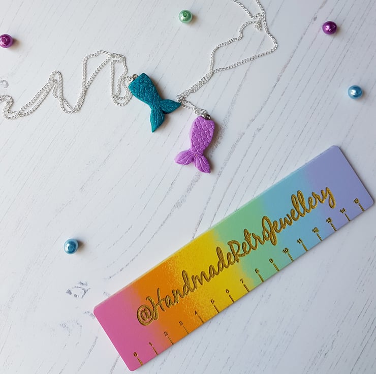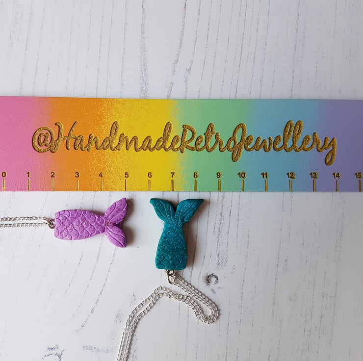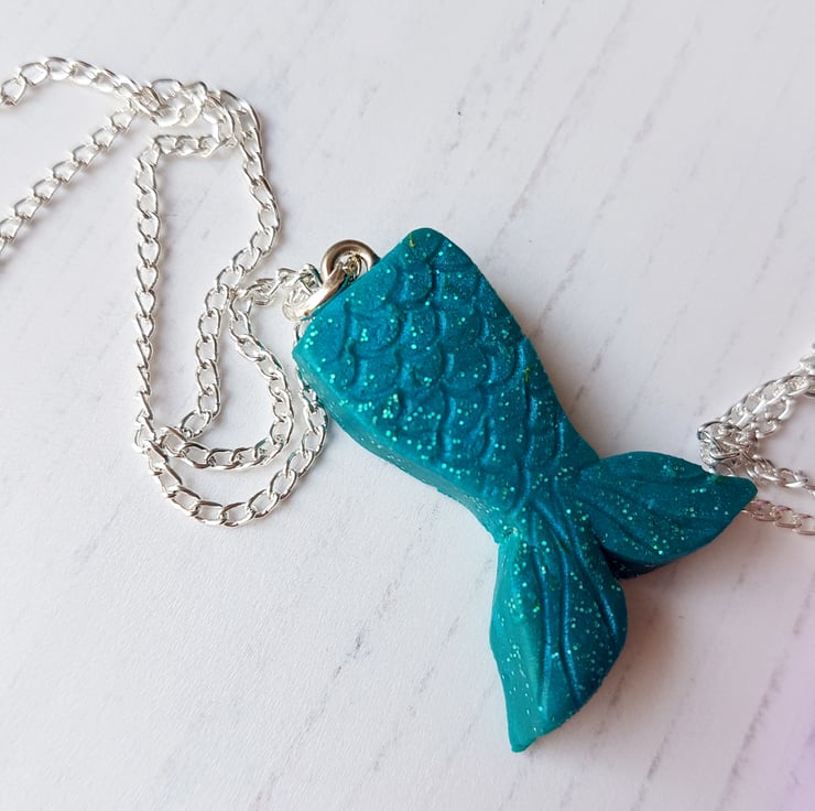 A carefully handcrafted mermaid tail necklace, with complimentary colour glitter and gloss to finish! A very sparkly shiny piece, which would look right at home under the sea!