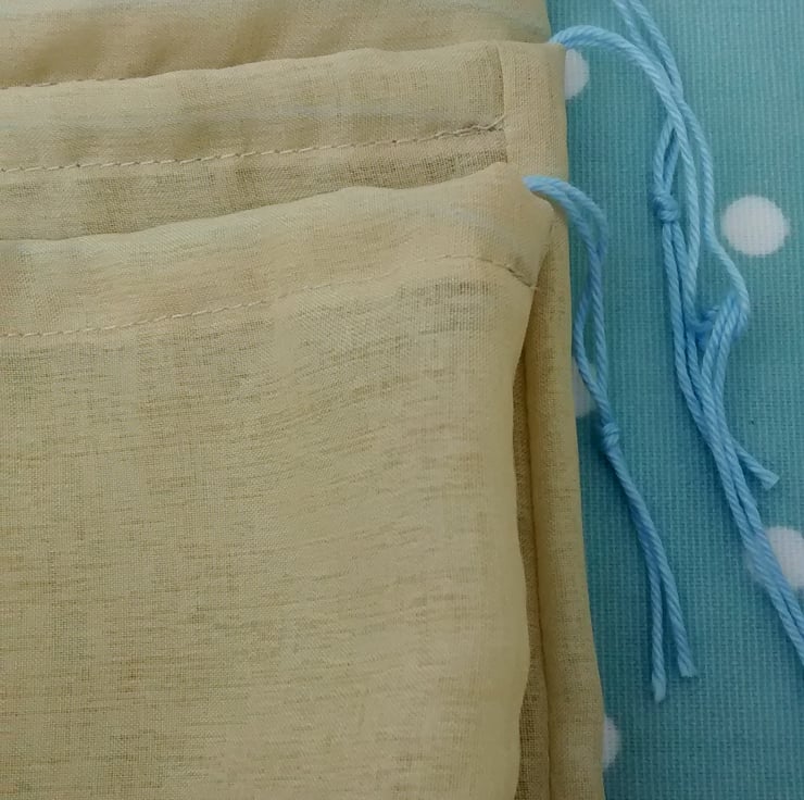 Sewn with double seams and closed with a cotton drawstring, these are sustainable bags, sturdy enough to use for your weekly shop.