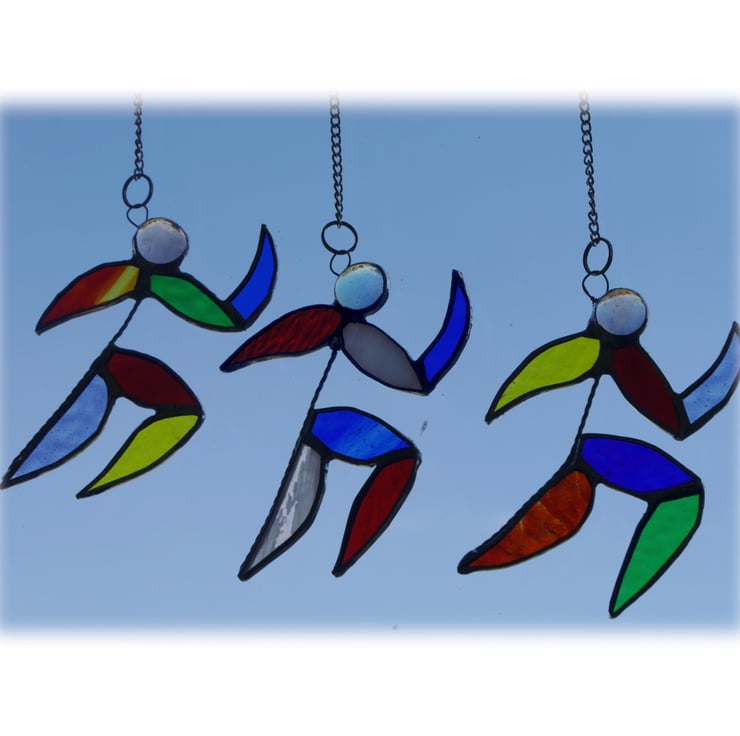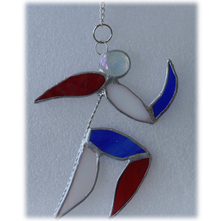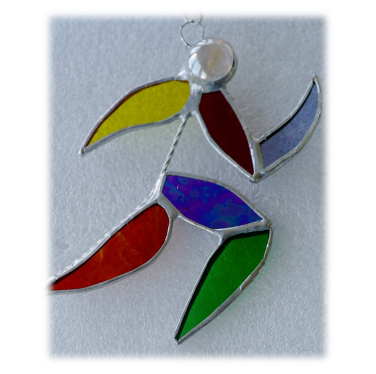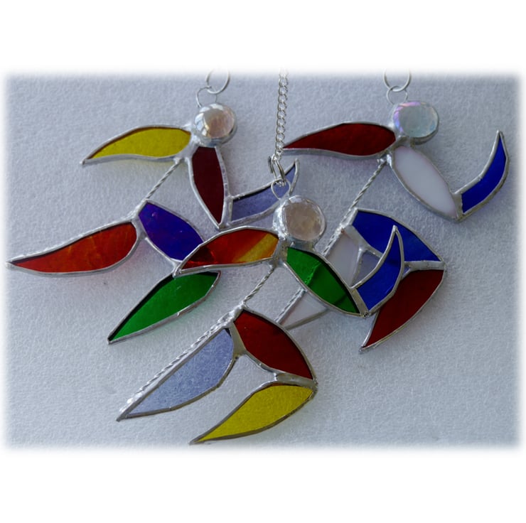 This is a stained glass suncatcher made using the Tiffany copper foil technique.