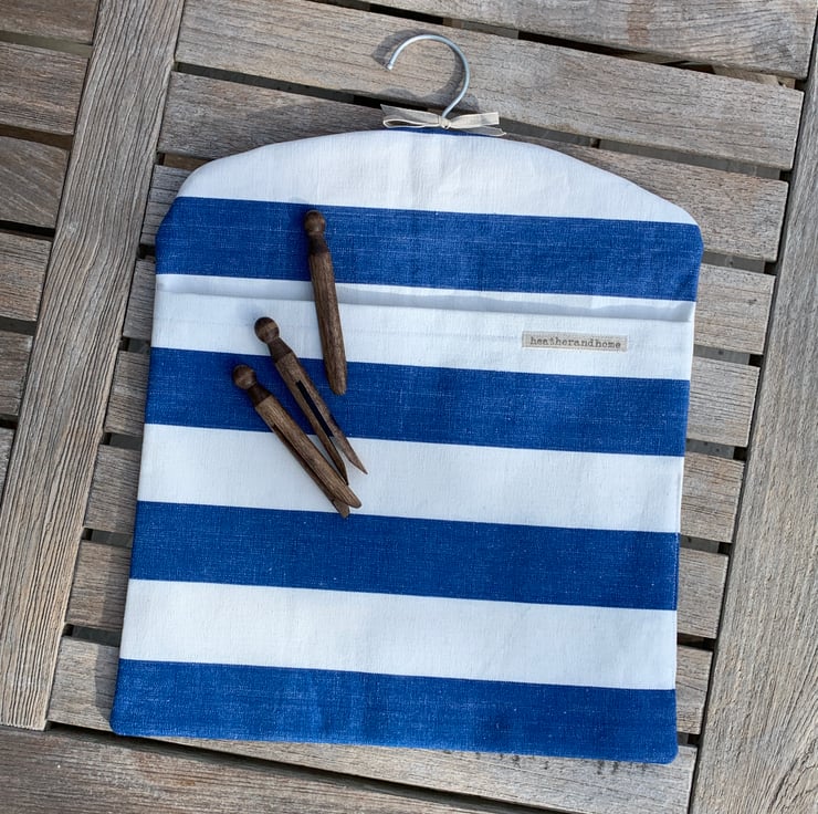 The peg bag would be very much at home on a coastal washing line - but will look equally dashing in urban and inland laundry rooms.