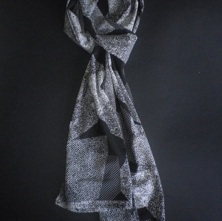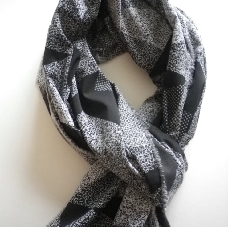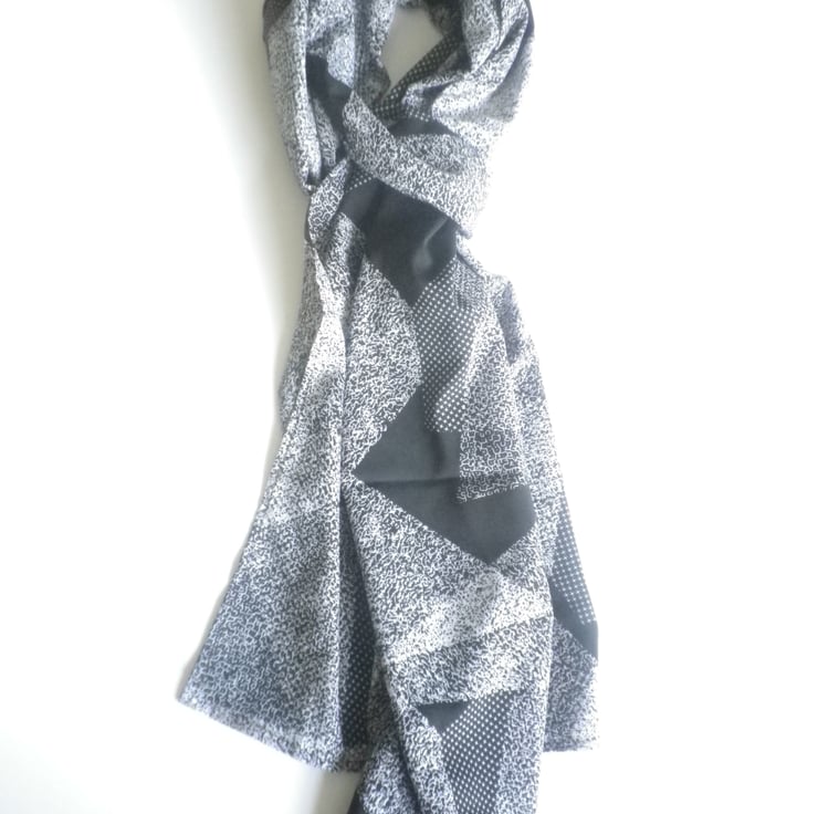 Grey and black lightweight blended fibres summer scarf, micro hemmed, great gift