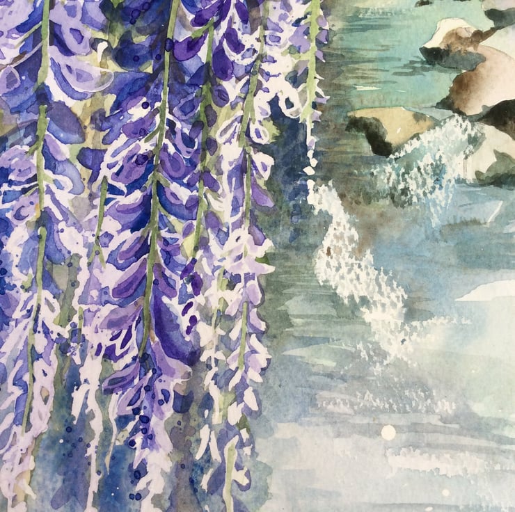 There are so many beautiful wisteria trees in flower at the moment, I couldn’t resist painting one.