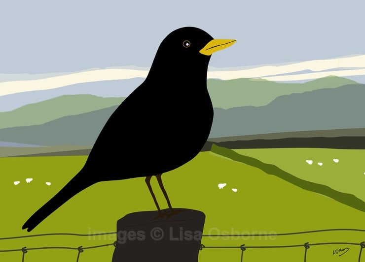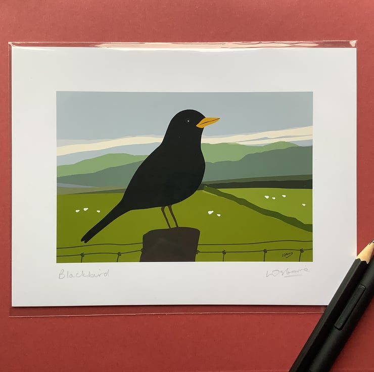 Blackbird in the valley - high quality, open edition print from one of my digital illustrations.
