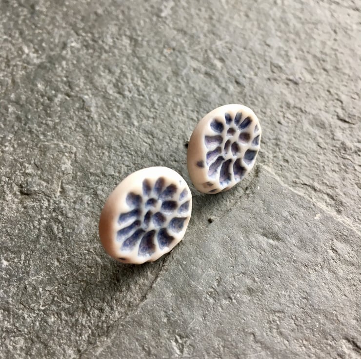 This pair feature my ammonite pattern for all the fossil lovers out there! Matching brooches are also available.