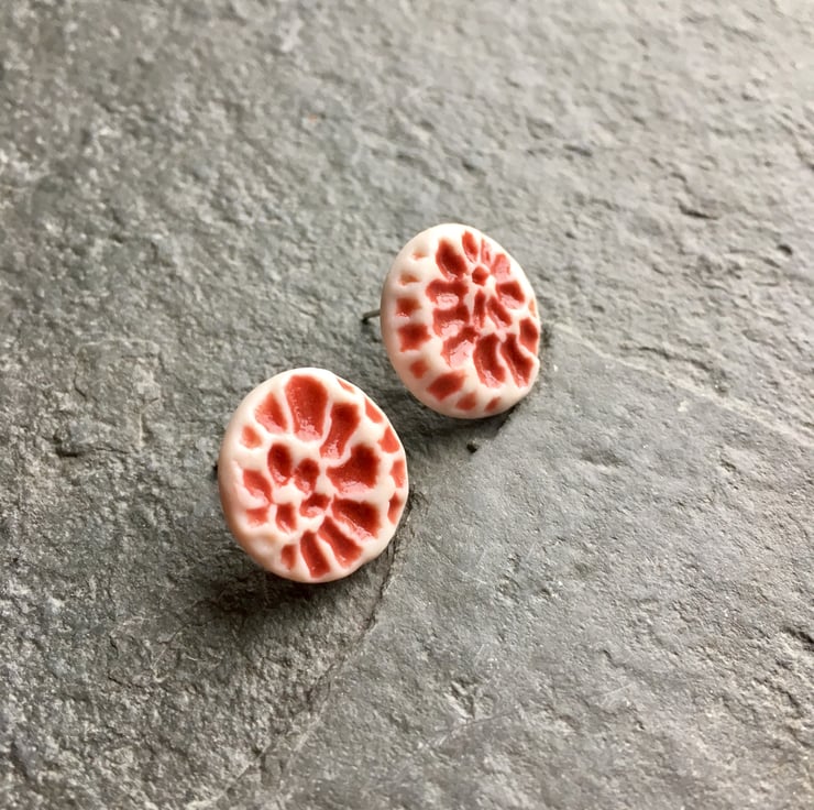 My handmade porcelain stud earrings are from a new range of accessories at The Porcelain Menagerie. Buttons of fun for your earlobes!