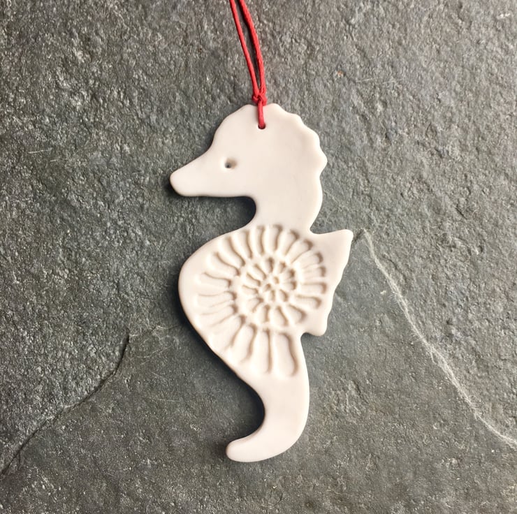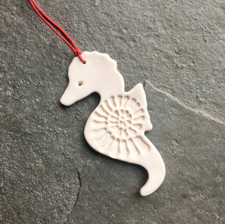 A new seaside addition to The family of The Porcelain Menagerie, my ammonite Sea horses! Available in a selection of colours all handmade and decorated!