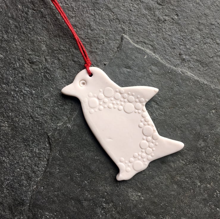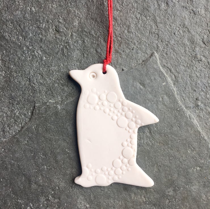 With many of my little porcelain creatures becoming decorations for the home (especially at Christmas) I thought it was time to introduce a creature from colder climes to keep the polar bear company. Here is Percival the Penguin! He has several brothers and sisters with coats of other colours, check out the family!