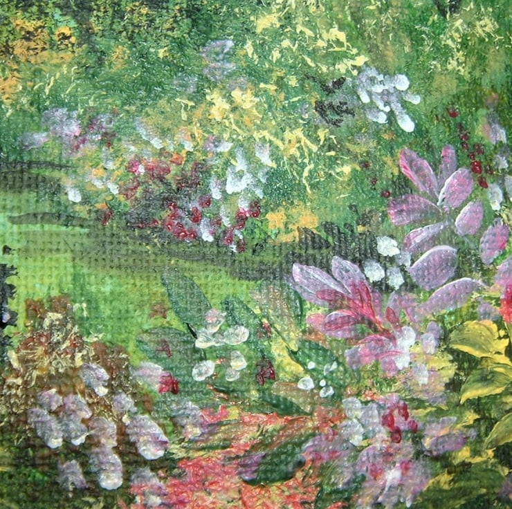 Created using artist quality acrylic paints on solid canvas board, it measures approximately 7" x 5" and is unmounted and unframed.