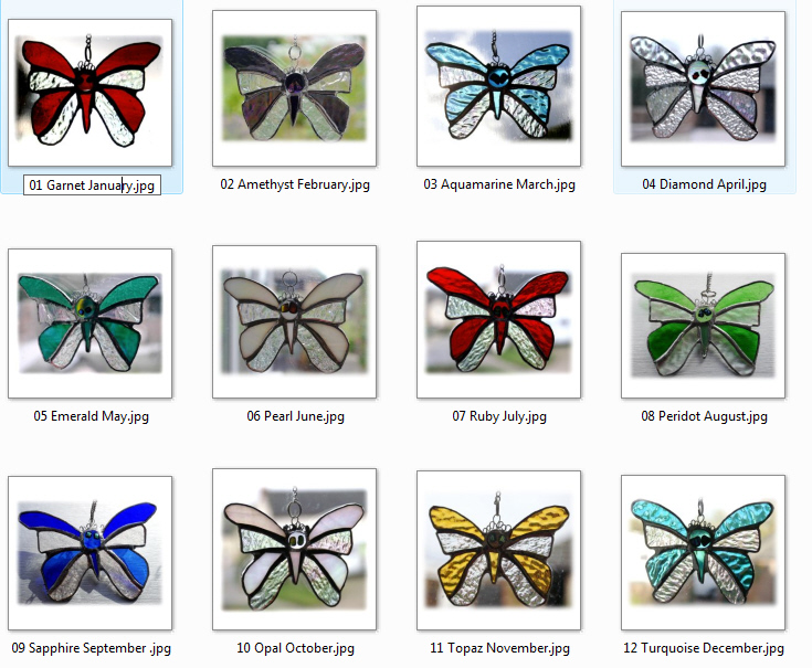 The 4th photo shows a full set of all 12 Birthstone butterflies I usually have several different months in stock.