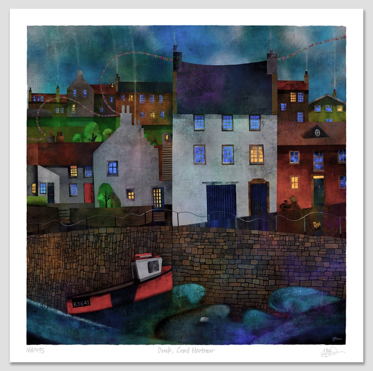 ’Dusk, Crail Harbour' illustration © BreukArt/Mark McPhelim