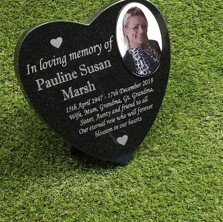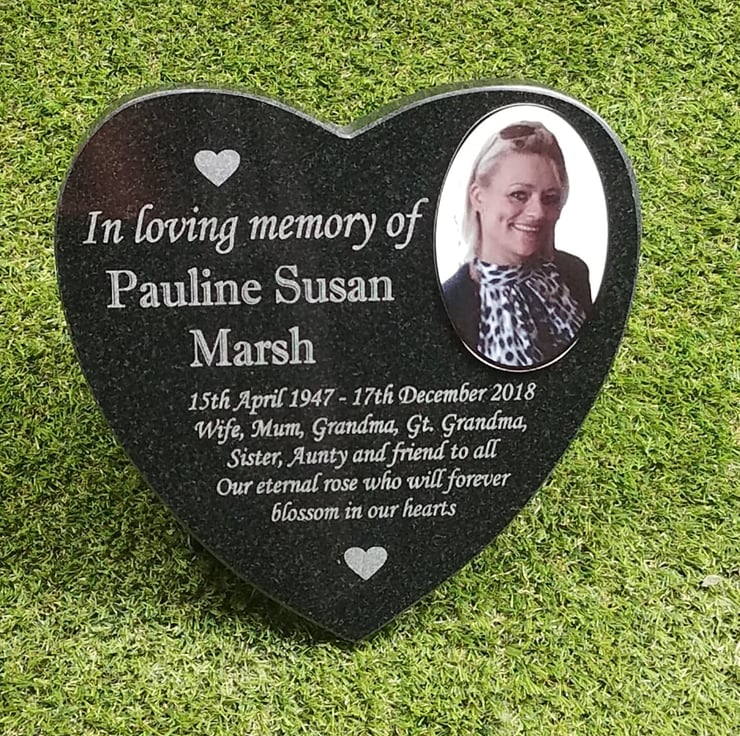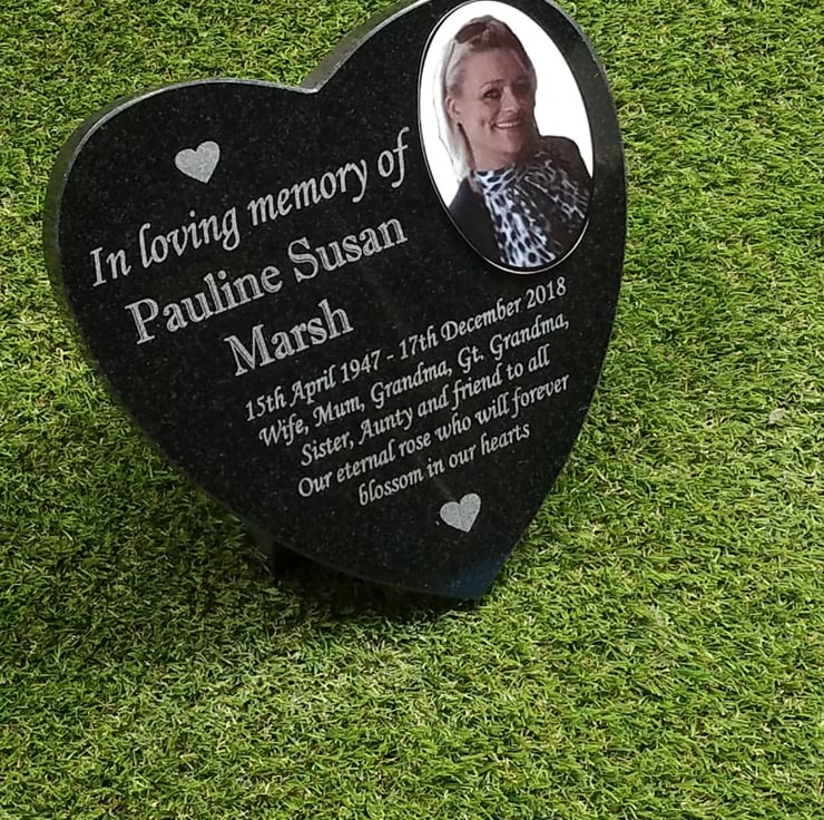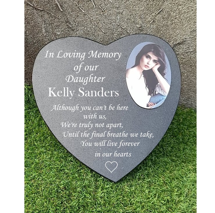 Heart Shaped Solid Black Granite Engraved Personalised Granite Memorial Grave Plaque (Price includes personalisation)